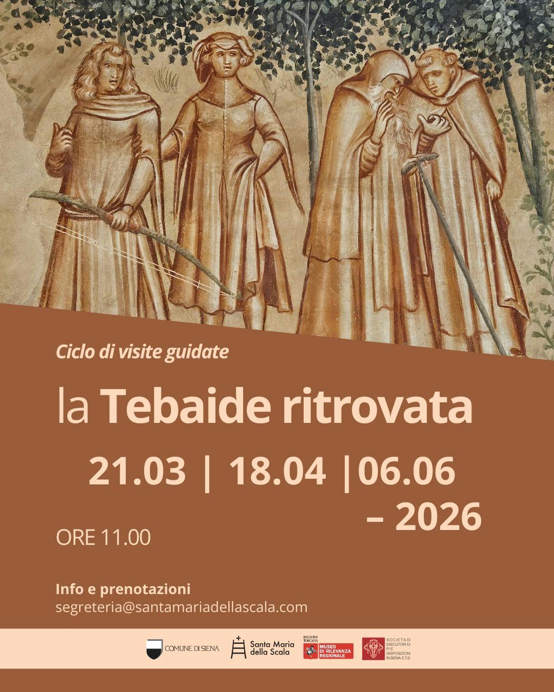 The Santa Maria della Scala museum complex, in collaboration with Società di Esecutori di Pie Disposizioni in Siena- E.T.S., offers a series of visits, curated by Laura Martini and Raffaele Marrone, dedicated to the discovery of the cycle of frescoes of the Thebaid, recently restored and returned to the public. The appointments are scheduled on Saturday 21 March, 18 April and 6 June at 11.00.