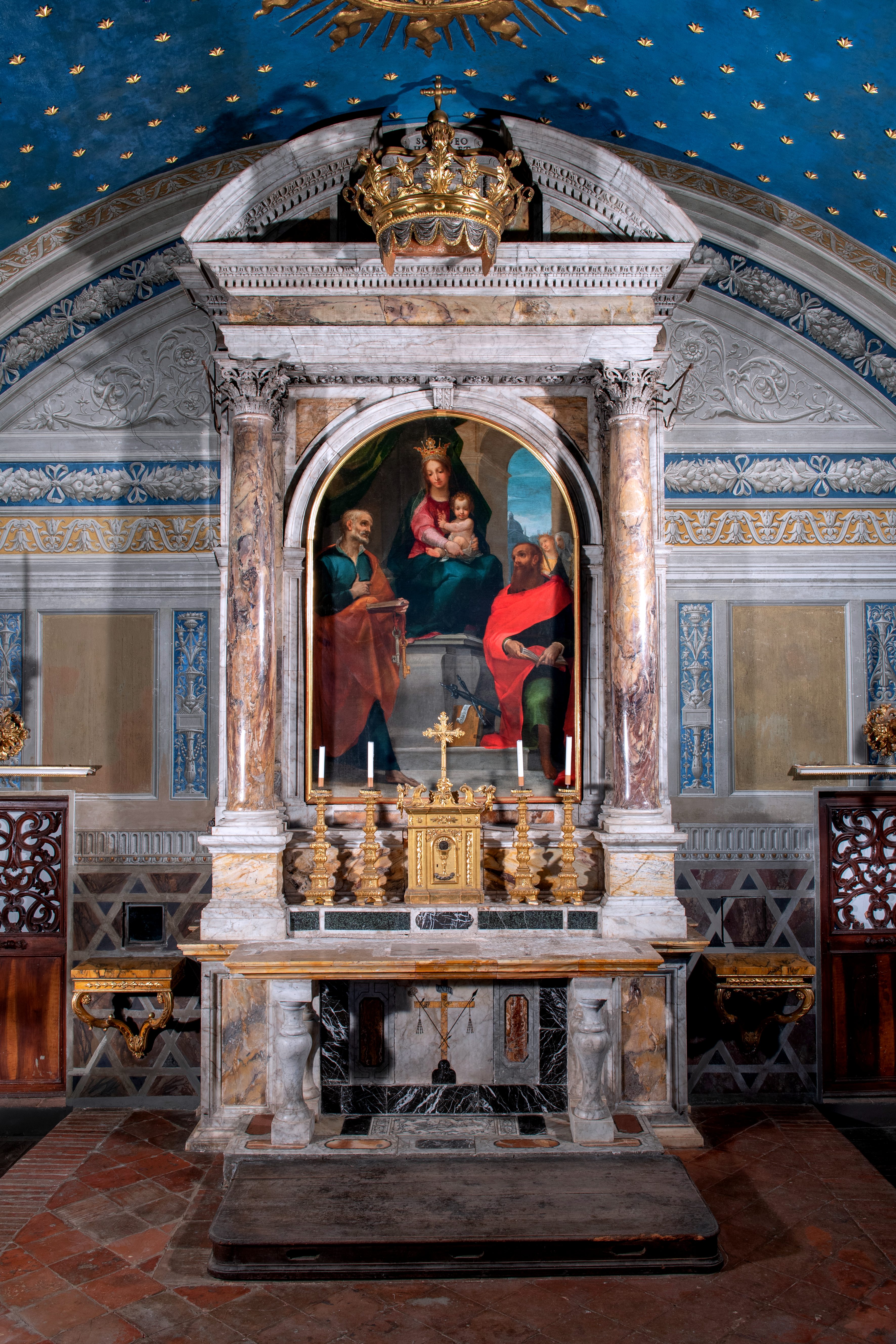 The Confraternity of the Disciplinati di Maria Santissima, later the Società di Esecutori di Pie Disposizioni, is the oldest lay brotherhood located in the underground sections of Santa Maria della Scala. Originally established in Siena Cathedral, the existence of the confraternity, devoted to charitable works, is mentioned in a letter by Saint Catherine herself. On April 14, 1785, a grand-ducal decree included the company among those suppressed, reforming it as the Società di Esecutori di Pie Disposizioni dedicated to charitable works, while depriving it of its religious aspects. Only in 1792 did Ferdinand III, Grand Duke of Tuscany, definitively restore the Society as a religious confraternity. Its artistic heritage, enriched over the centuries both through furnishings and works of art, often acquired through bequests from artists to whom the institution itself awarded scholarships, remains considerable even today, though for the most part preserved at the headquarters on Via Roma, where numerous works such as paintings and furnishings from the Sienese school can be found. At Santa Maria della Scala, a beautiful wooden Crucifix is still preserved among the terracotta figures of Saint Bernardino and Saint Catherine; tradition holds that this was the crucifix that inspired Saint Bernardino to don the Franciscan habit. On the other altar of the oratory, there is a canvas by Alessandro Casolani depicting the Madonna and Child with Saints Peter and Paul. The Sacristy also features fascinating frescoes attributed to Andrea Vanni and Luca di Tommè. During the restoration of the ancient hospital at the end of the last century, a vast fresco cycle from the early 1300s depicting monks and hermits was uncovered along the staircase leading to the company of the Disciplinati. This extraordinary pictorial complex, known as the 'Thebaid,' is attributed to the Sienese painter Lippo Vanni.